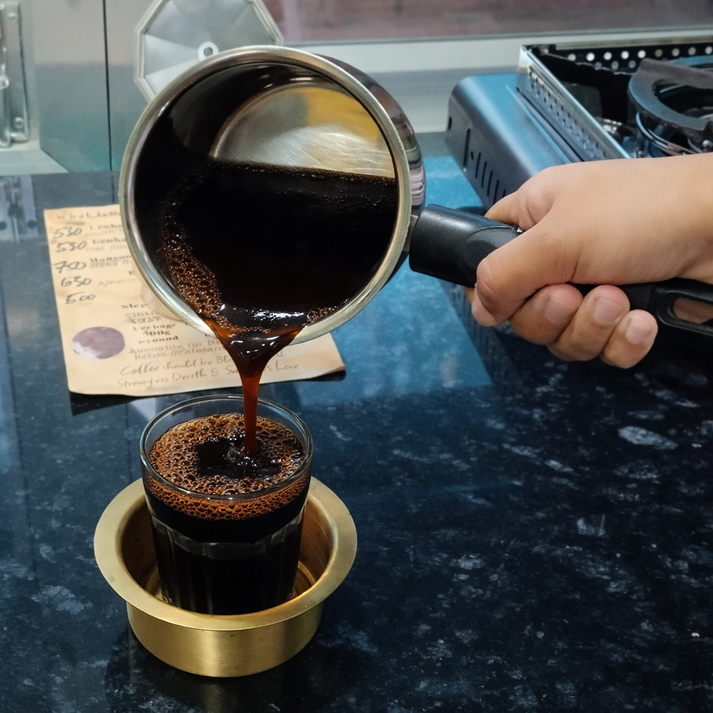 This blend is a great favorite for those with more experience. It is not known for being too strong or too dark, so it is a great choice for filter pour over or the moka pot over gas burner. The flavors are smooth and appreciated during those steamy monsoon afternoons.